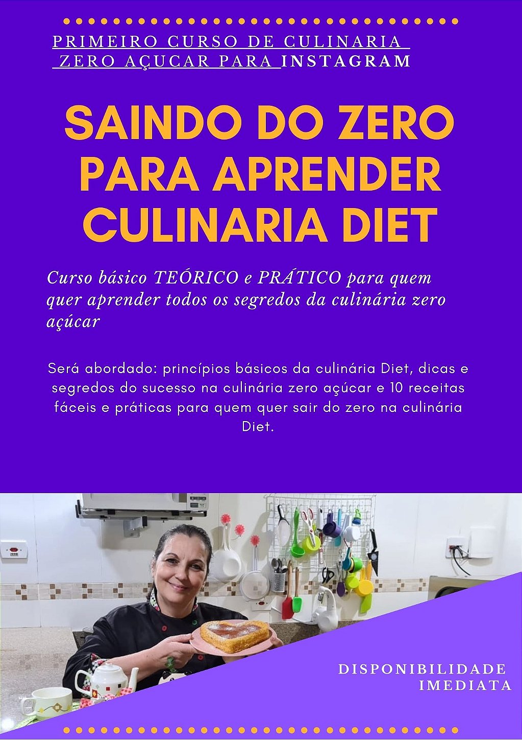 CURSO "SAINDO DO ZERO PARA APRENDER CULINÁRIA DIET": Todos os segredos para quem quer aprender a culinária zero açúcar em um curso básico totalmente desenvolvido para o INSTAGRAM, com conteúdo teórico e prático para o seu sucesso.